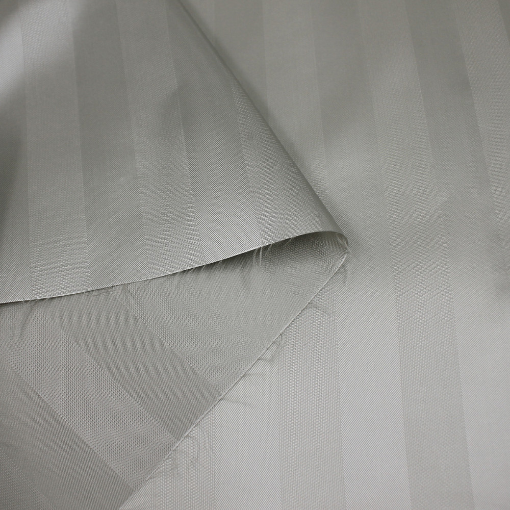 • Жаккардовое переплетение: Это не набивной рисунок, а сложное переплетение нитей, создающее рельефную фактуру и узор (в данном случае — полоски) на обеих сторонах полотна. Такая технология повышает прочность и износостойкость ткани, предотвращает вытягивание и деформацию. Узор не выцветает и не стирается со временем.